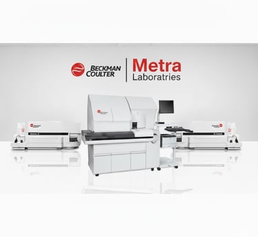 كما نمتلك جهاز Beckman Coulter أحد أسرع أجهزة قياس كيمياء الدم بسرعة تصل إلى 800 تحليل في الساعة.